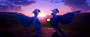 Anfangs konnte sie Blu nicht leiden sagte sogar kurz das sie ihn hasst. Doch im laufe des Films verliebt sie sich in ihn. Als sie von Nigel entführt wurde, kam Blu zu ihrer rettung und wurde ebenfalls gefangen genommen, als das Flugzeug los flog und Blu zuerst sich, dann Jewel und die anderen Vögel befreite nahm Nigel ihn in die Mangel als Jewel versuchte ihn zu retten, stieß Nigel sie weg, sodass ein Käftig auf ihren Flügel fiel. Blu konnte sich retten aber Jewel stürzte aus dem Flugzeug. Er sprang ihr nach und griff sie. Blu sagte ihr was er für sie empfindet und darauf küsste sie ihn. Er gründete mit Jewel eine Familie. Als in Rio 2 Jewels Vater und ihr Freund aus Kinderzeiten Roberto dazukamen droht die Familie auseinanderzubrechen, sodass ihre Liebe nochmal auf die Probe gestellt wird...