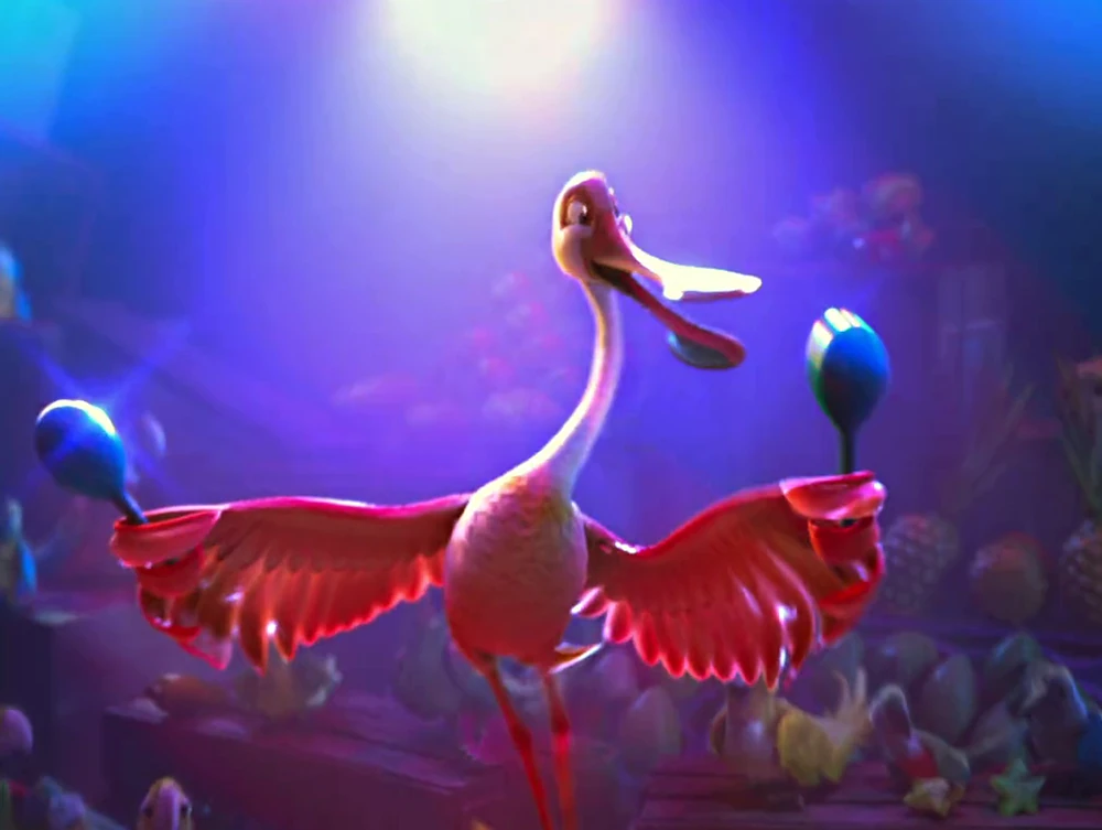 Zgłasza się na przesłuchanie karnawałowe, ale wchodząc do garażu Luiza, poślizgnął się na ślinie buldoga i przewraca się. Na koniec filmu przylatuje wraz z Luizem do Amazonii.