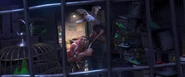 The next morning, when Marcel returned to his hideout, about to transport all the kidnapped birds (including Blu and Jewel) to the airport for further shipping, he found out that the two precious blue macaws were missing. Armando and Tipa replaced Blu and Jewel's empty cage with two chickens sprayed in colors as same as the original birds, but their poorly done subterfuge failed to convince Marcel. Shocked and infuriated, Marcel put his entrusted right-hand bird Nigel in charge of finding the two macaws. and ordered Armando and Tipa to prepare a float for Carnival later on that night.