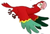 Felipe has red plumage, with yellow and blue wing feathers. He has a short feather ruffle on his head. Felipe has green eyes.